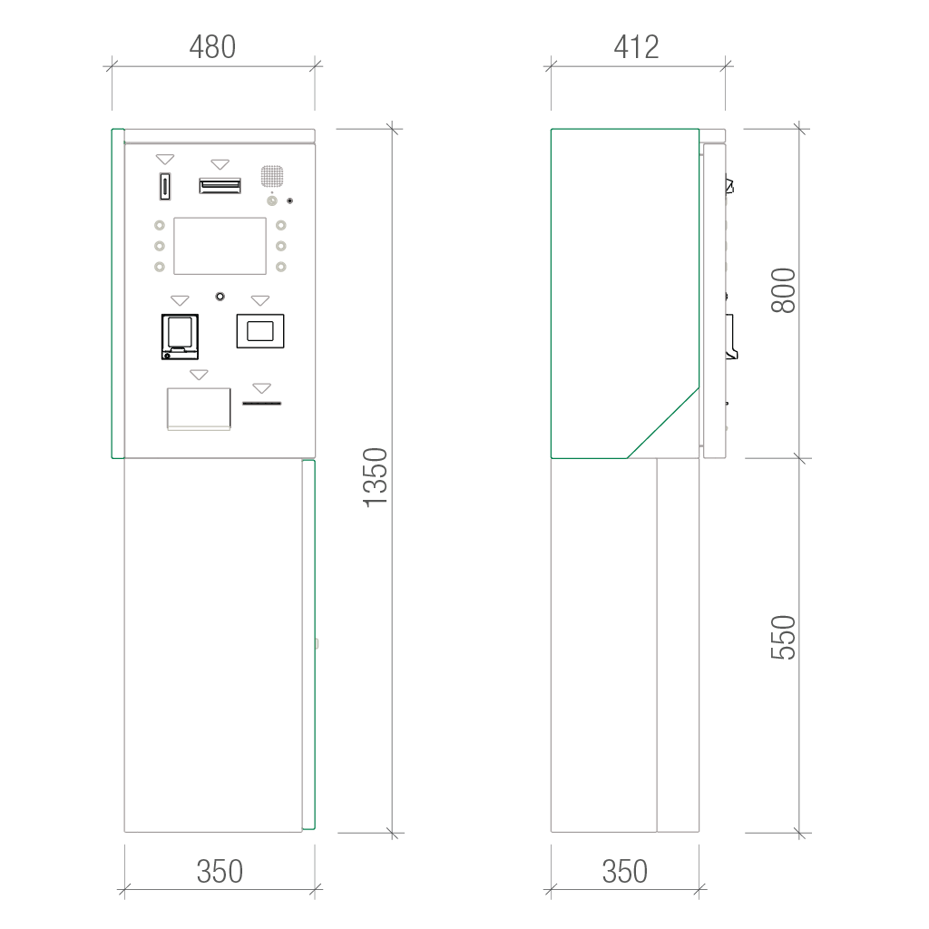 To je automatska kasa namenjena beskontaktnoj naplati parkinga, koja omogućava plaćanje kako gotovinom, tako i beskontaktno.